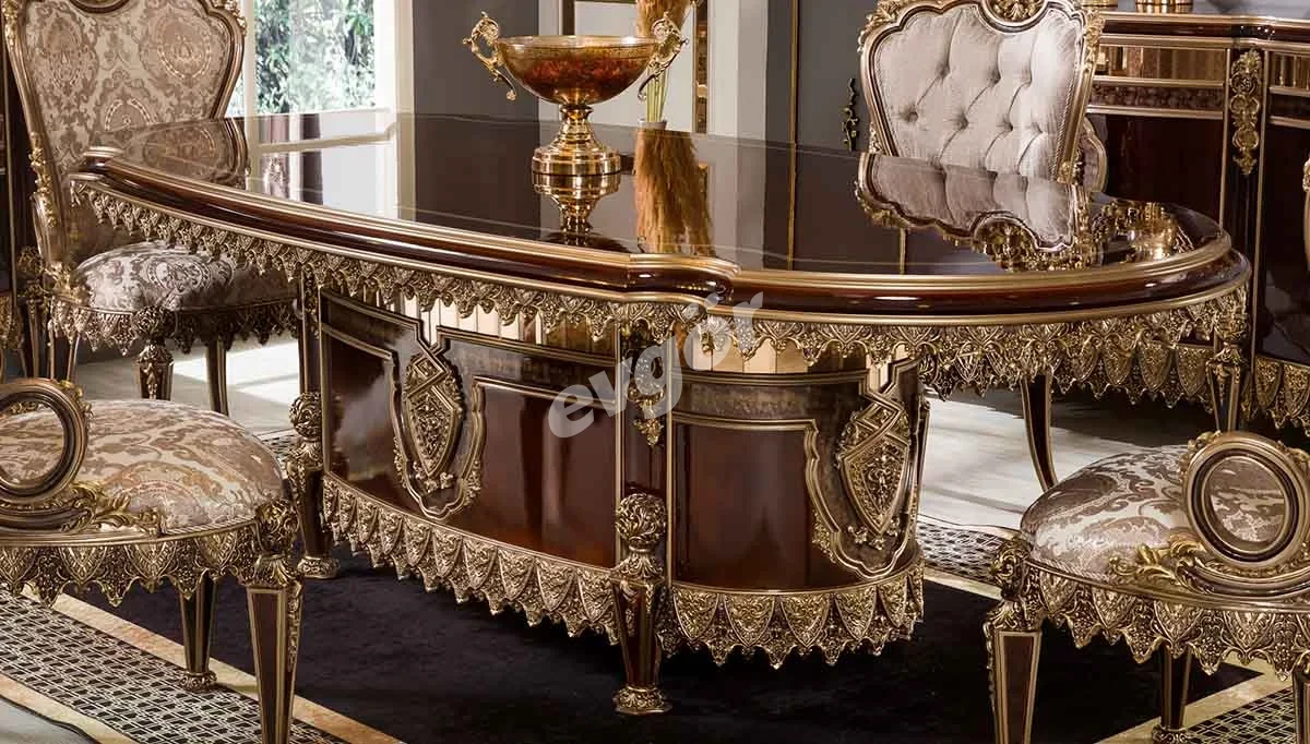 Haseki Ceviz Klasik  Yemek Masasışık tasarımı ile kalitenin adresi Evgör Mobilya'da.