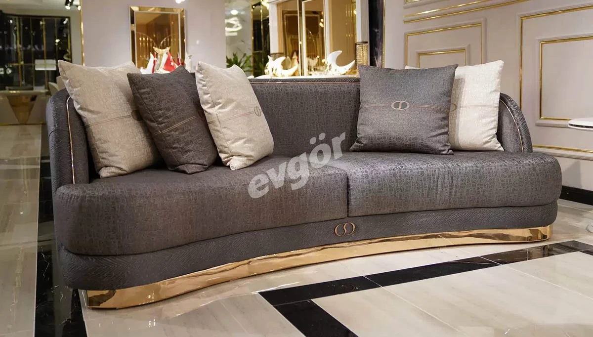 Helena Gri Lüks Üçlü Koltuk , şıklığı ve göz alıcı tasarımı ile salonunuzun vazgeçilmezi olacak.