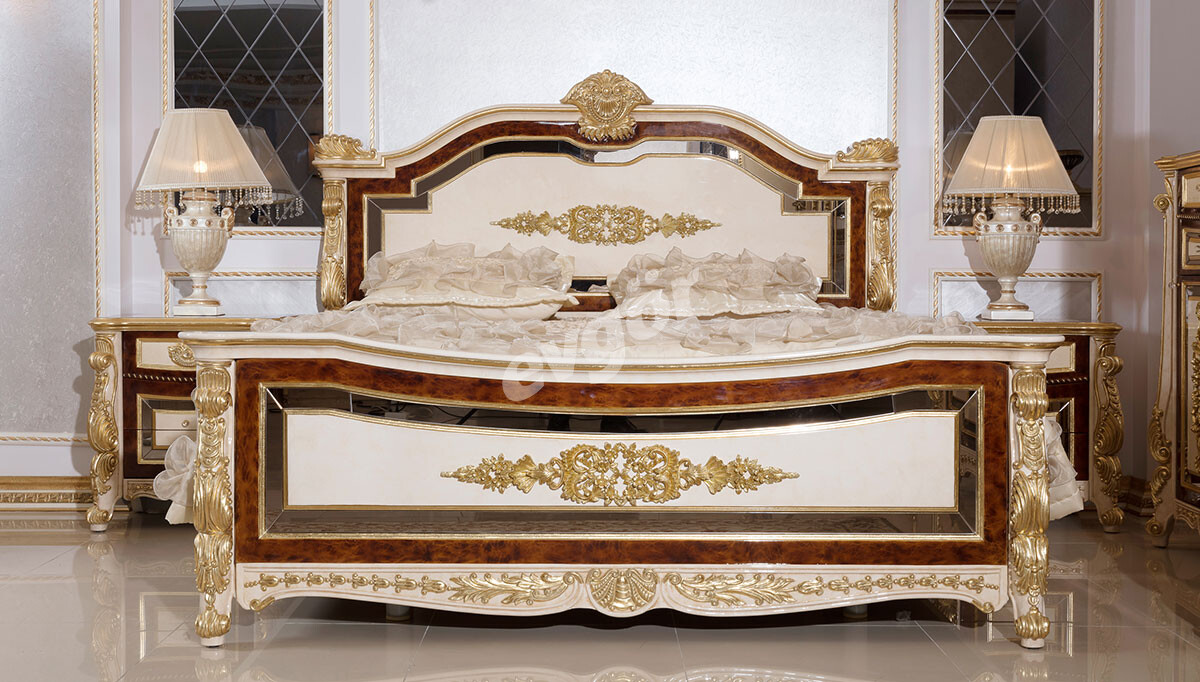 Klasik Yatak Odası parçaları arasında bulunan şık Yatak, Komodin, Şifonyer ve Gardırop varaklı tasarımların klasik estetiğiyle birleşerek benzersiz bir stili de sizlere sunuyor.