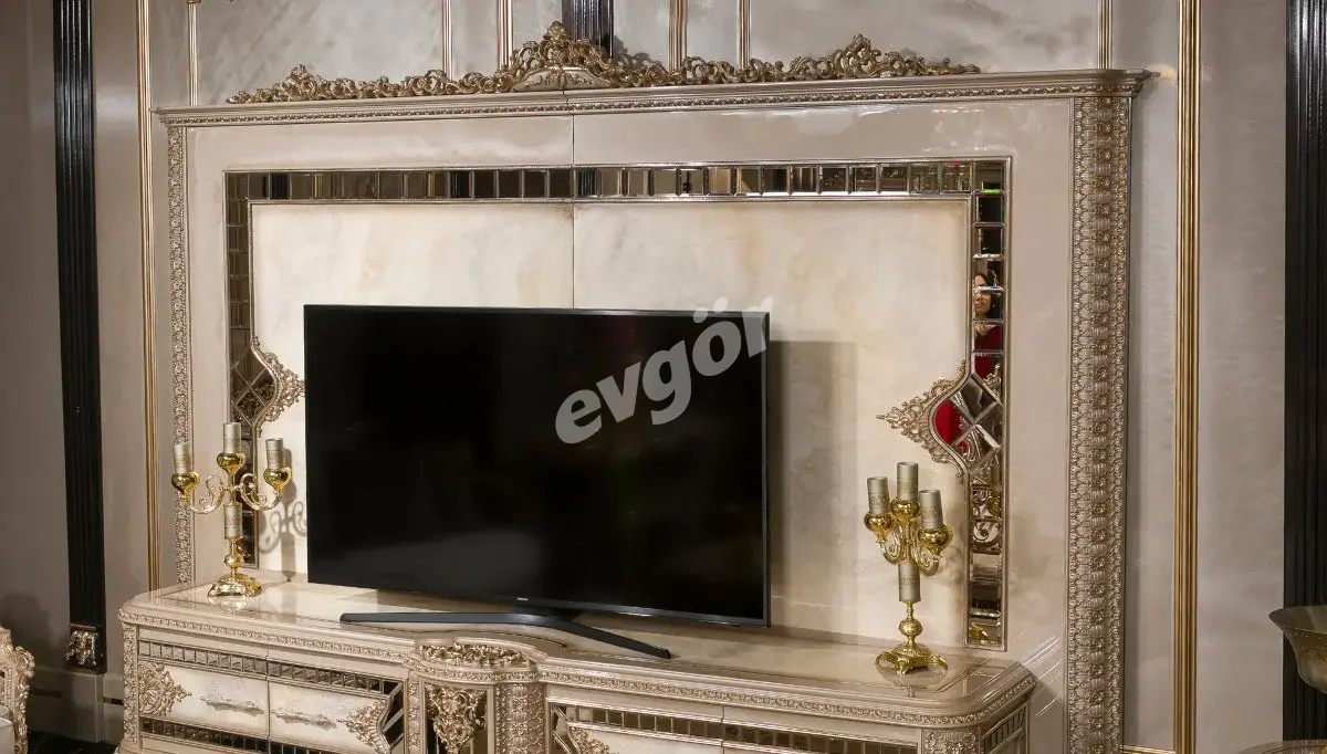 Laleli Krem Klasik Tv Ünitesi, TV Sehpası ve TV Panosu olmak üzere 2 parçadan oluşmaktadır.