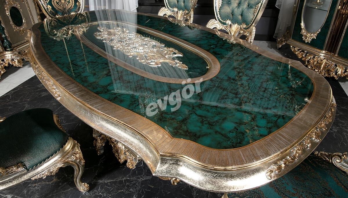 Lapseki Yeşil  Klasik Yemek Masası asaletli tasarımı ile göz kamaştırıyor.