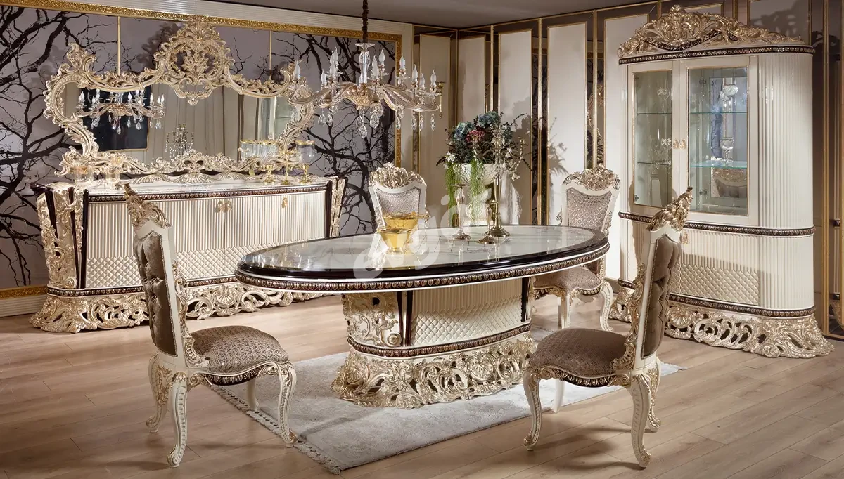 Pargalı Klasik Yemek Odası, şıklığı ve göz alıcı tasarımı ile salonunuzun vazgeçilmezi olacak.