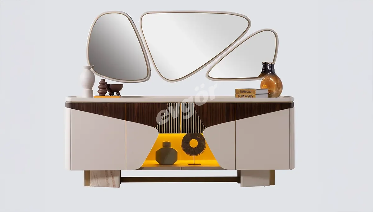 Ürünümüz takım olarak Konsol, Konsol Aynası, Yemek Masası ve 6 Adet Sandalye'den oluşmaktadır.