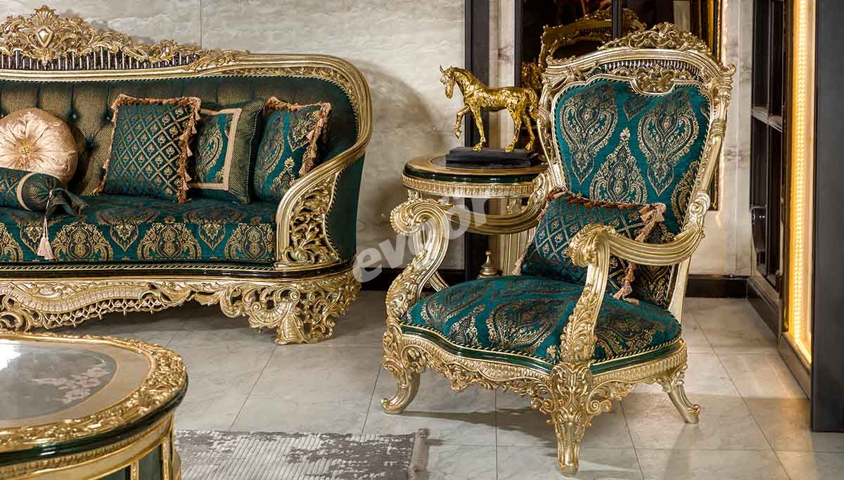 Prenses Yeşil Klasik Koltuk Takımı asaletli ve göz alıcı tasarımı ile Evgör Mobilya'da sizleri bekliyor.
