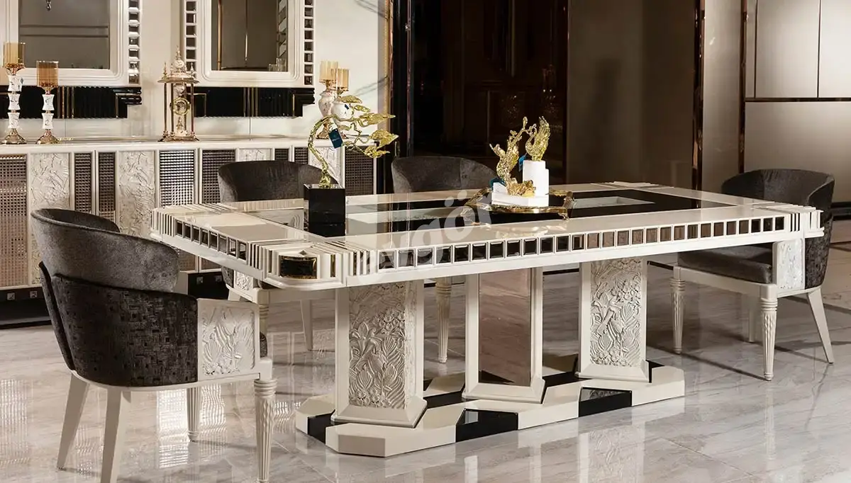 Ürünümüz takım olarak; Konsol, Konsol Aynası, Yemek Masası ve 6 adet Sandalye'den oluşmaktadır.
