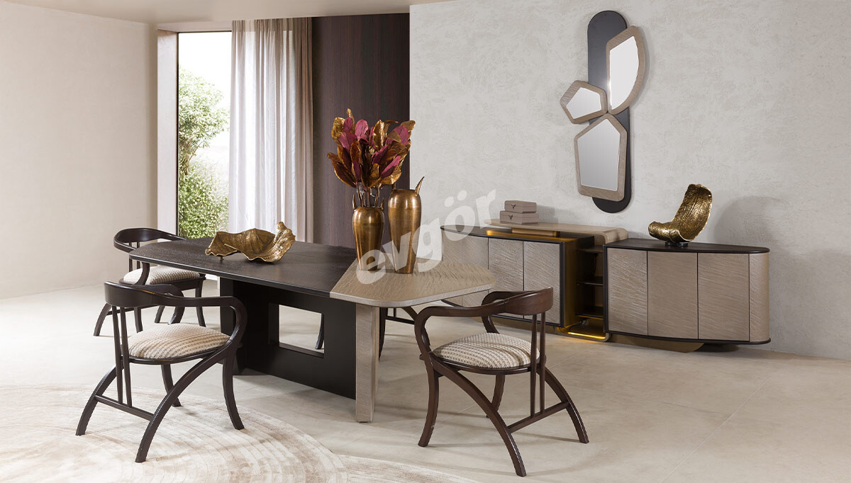 Rossi Lüks Yemek Odası asaletli ve göz alıcı tasarımı ile Evgör Mobilya'da sizleri bekliyor.