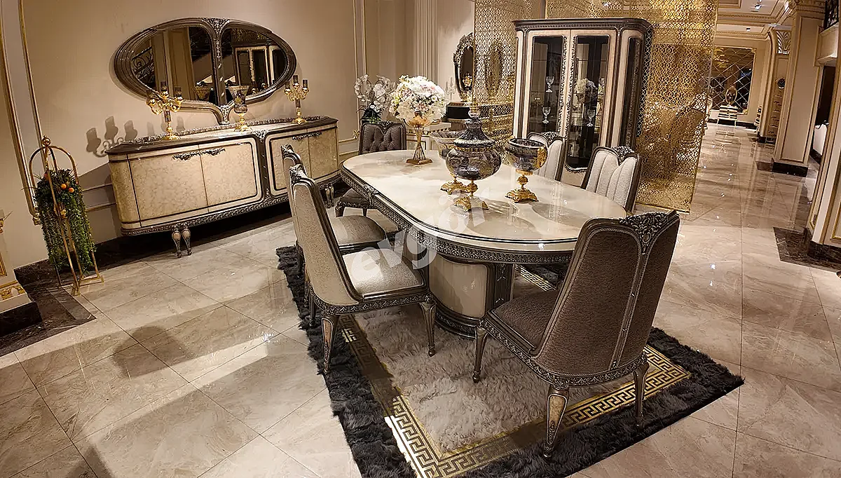 Milan Krem Lüks Yemek Odası asaleti ve göz alıcı tasarımı ile Evgör Mobilya'da sizleri bekliyor.