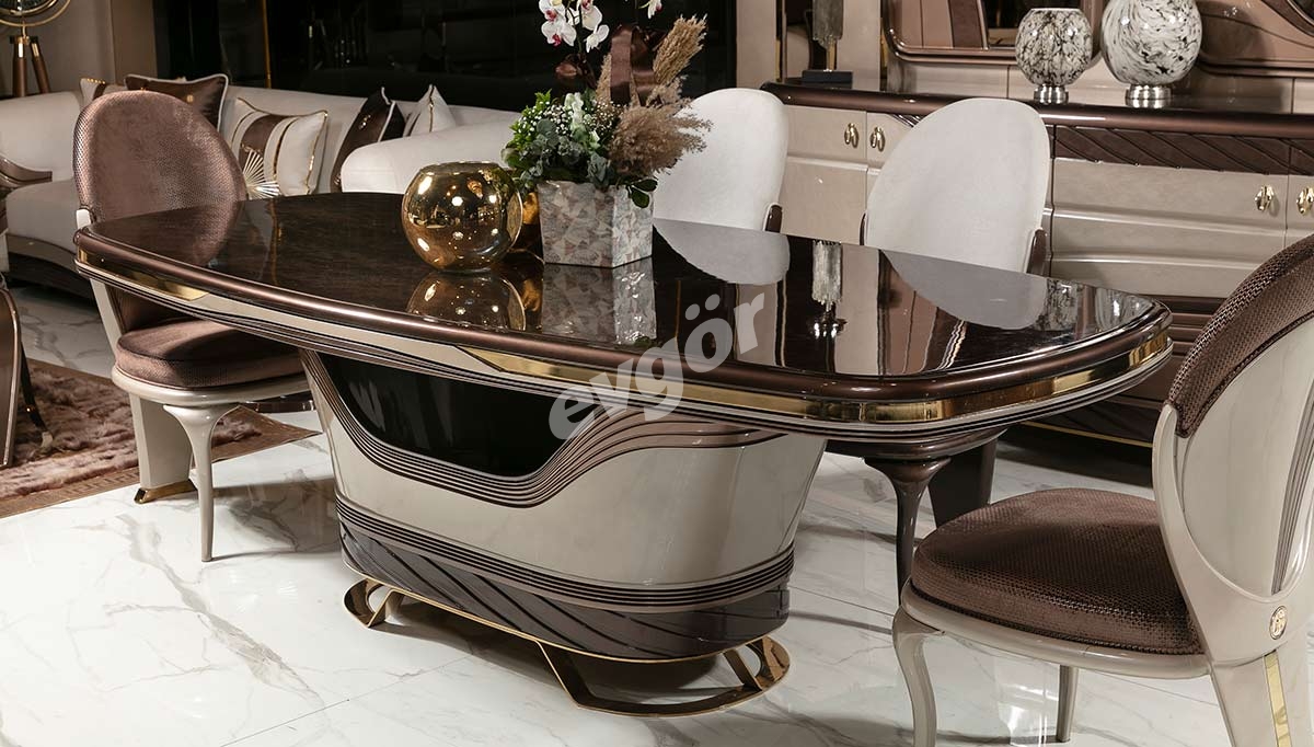 Verona Lüks Yemek Odası asaletli ve göz alıcı tasarımı ile Evgör Mobilya'da sizleri bekliyor.