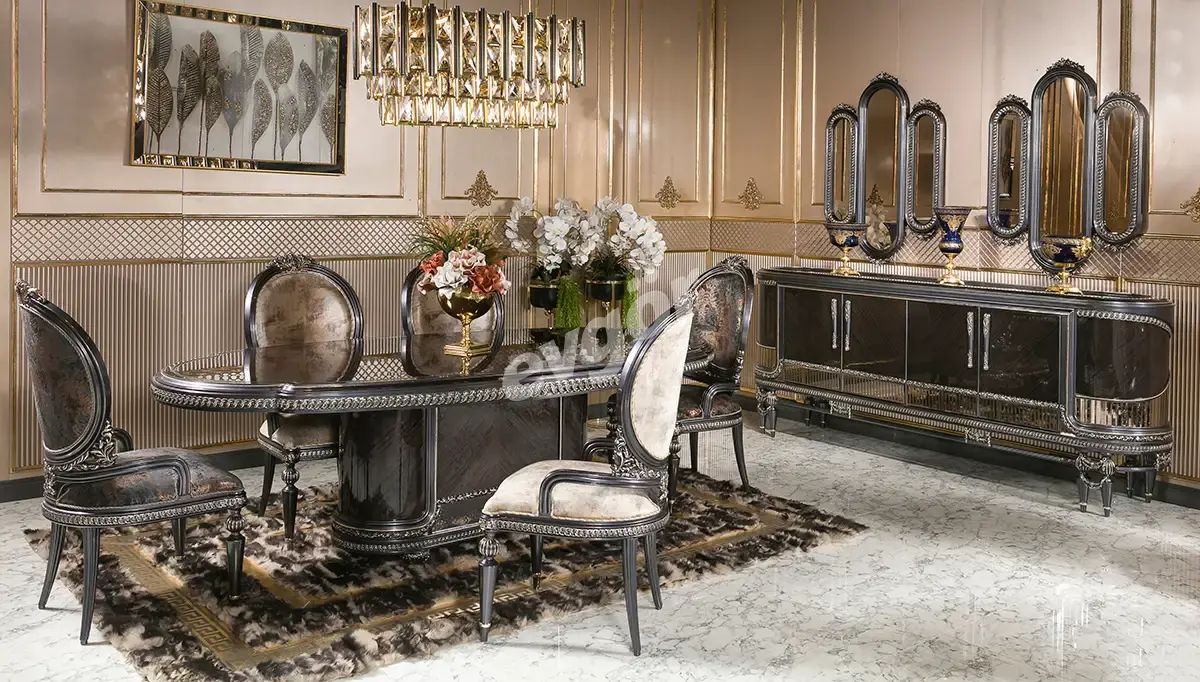 Elisya Lüks Yemek Odası , asaleti ve göz alıcı tasarımı ile Evgör Mobilya'da sizleri bekliyor.