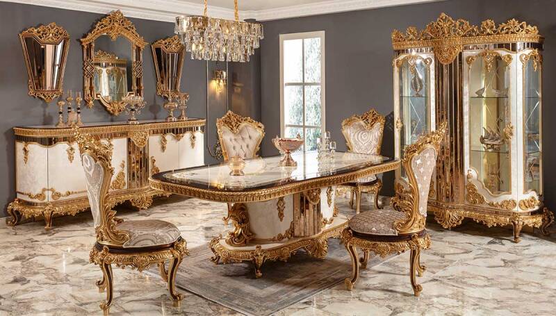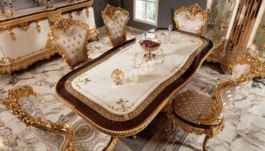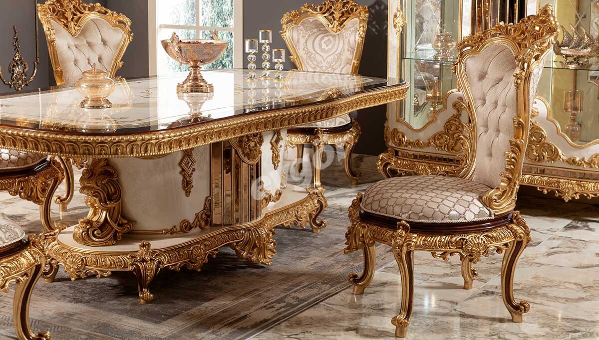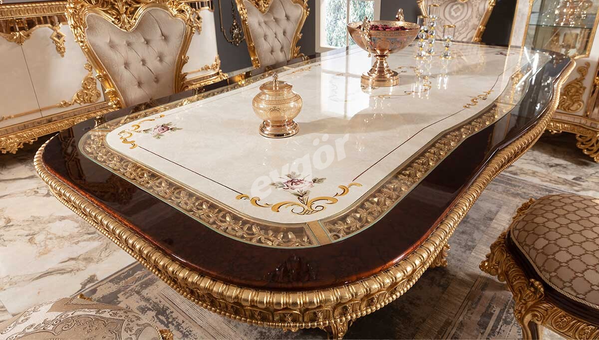 Galata Klasik Yemek Odası şık tasarımı ile kalitenin adresi Evgör Mobilya'da.