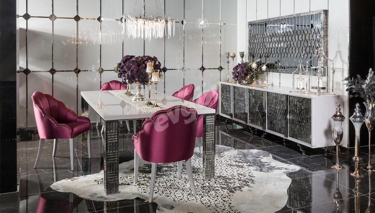 Ürünümüz Konsol, Konsol Aynası, Yemek Masası ve 6 adet Sandalye kombinasyonundan oluşmaktadır.