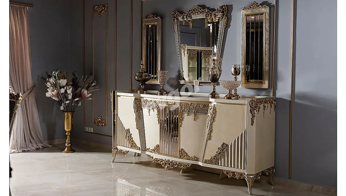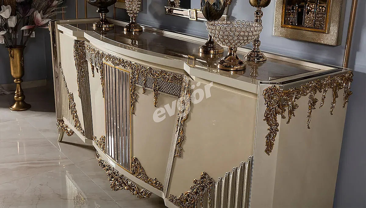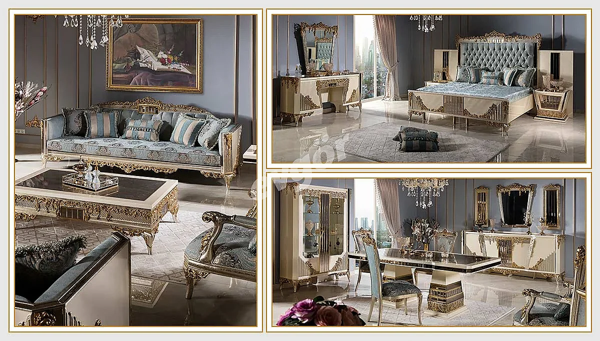 Ürünümüz Yemek Odası ( Yemek Masası + 6 Sandalye+ Konsol+ Ayna ) , Koltuk Takımı (2 Üçlü Koltuk + 2 Tekli Koltuk + Orta Sehpa +2 Yan Sehpa ) ve Yatak Odası (Karyola + Gardırop + 2 Komodin + Şifonyer +Ayna ) kombinasyonundan oluşmaktadır.