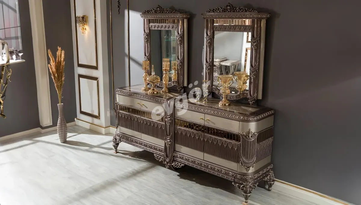 Hanzade Krem Klasik Konsol + Ayna şık tasarımı ile kalitenin adresi Evgör Mobilya'da.