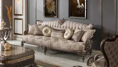 Hanzade Krem Klasik Üçlü Koltuk göz kamaştırıcı tasarımı ile kalitenin adresi Evgör Mobilya'da.