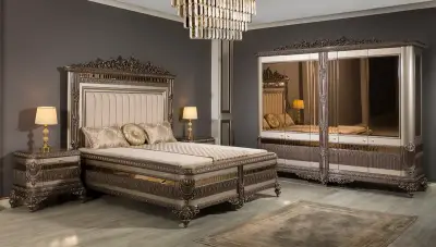 Hanzade Krem Klasik Yatak Odası, şıklığı ve göz alıcı tasarımı ile yatak odanızın vazgeçilmezi olacak.