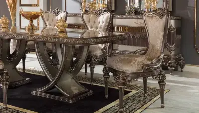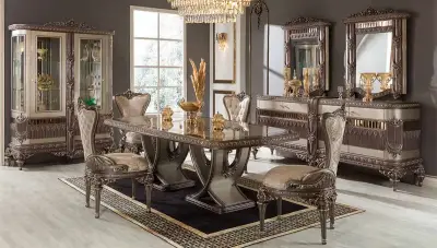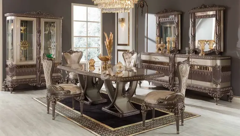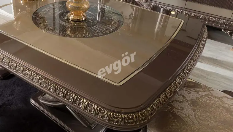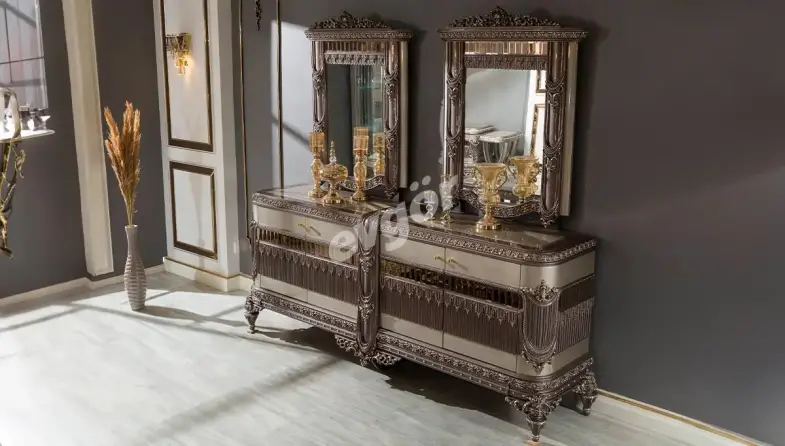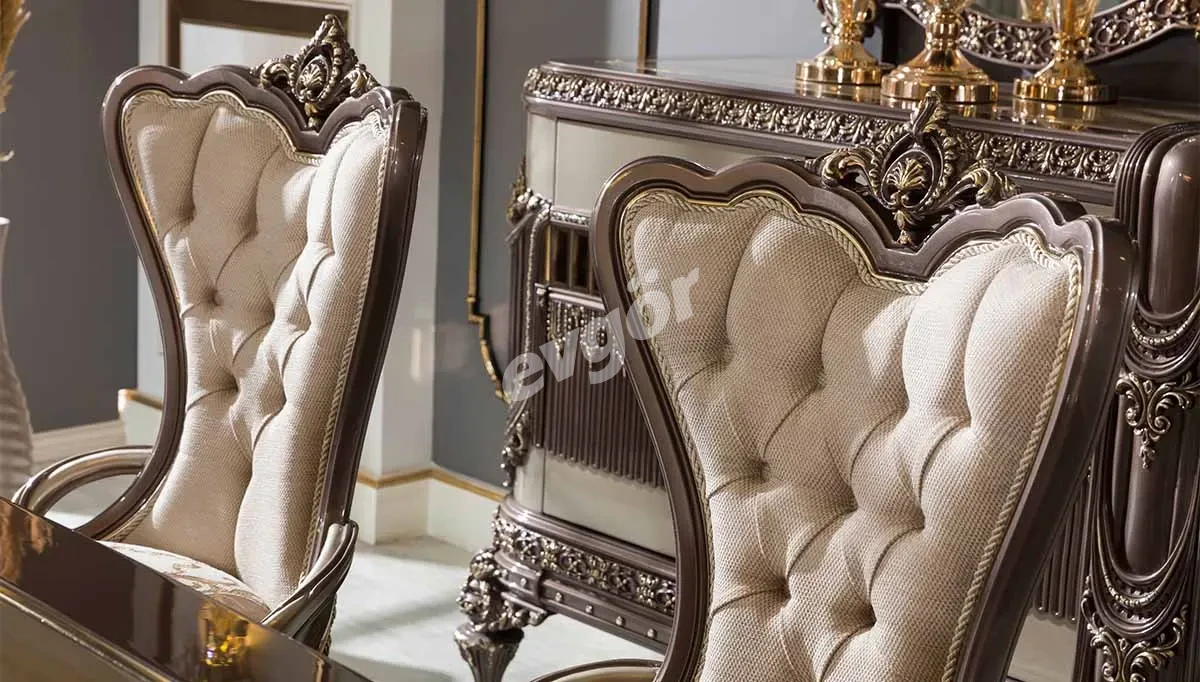 Hanzade Krem Klasik Yemek Odası şık tasarımı ile kalitenin adresi Evgör Mobilya'da.