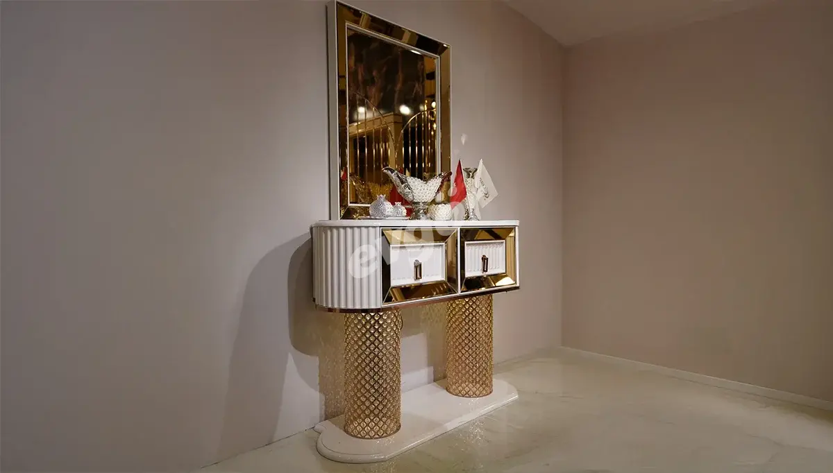 Helena Lüks Dresuar + Ayna, şıklığı ve göz alıcı tasarımı ile salonunuzun vazgeçilmezi olacak.