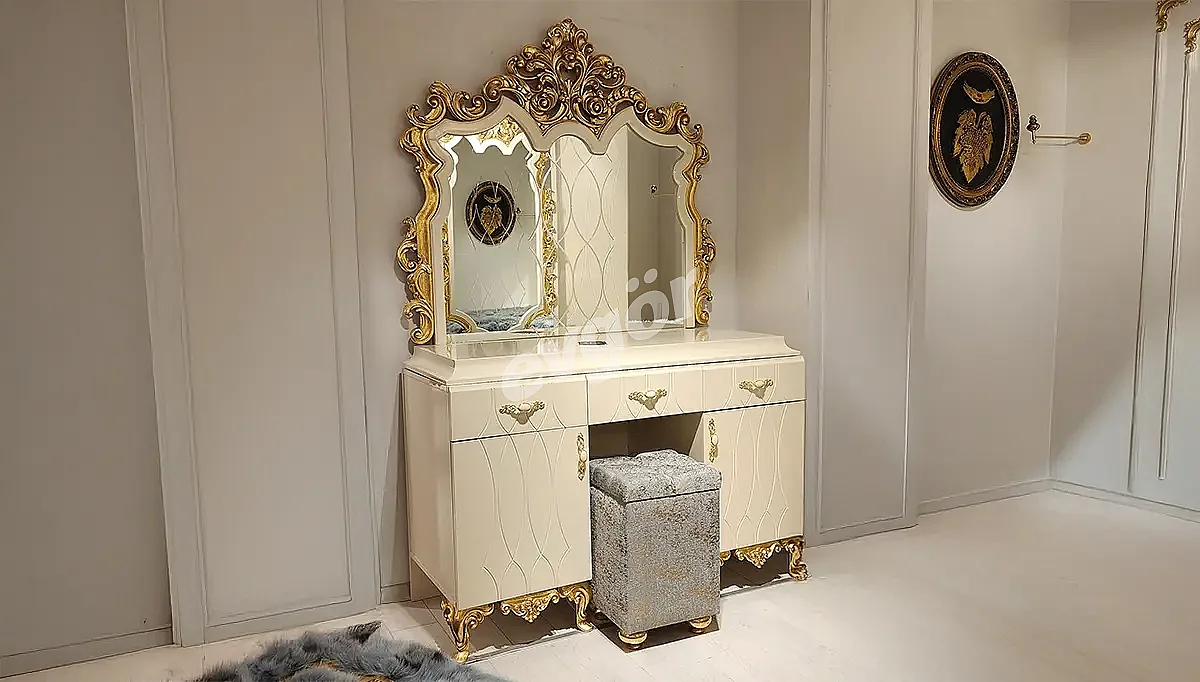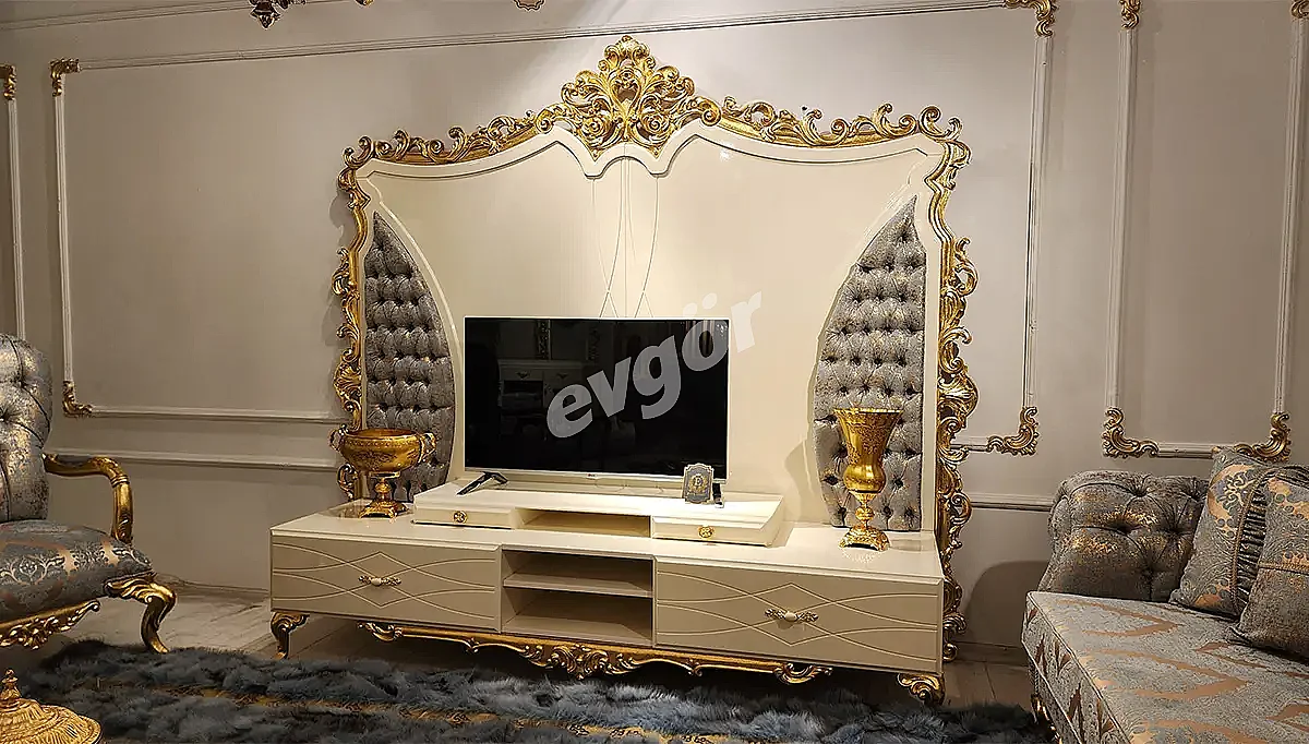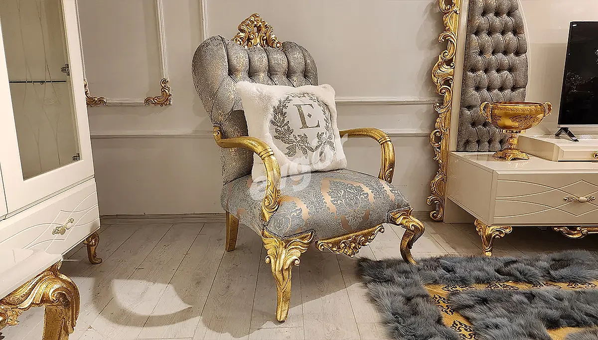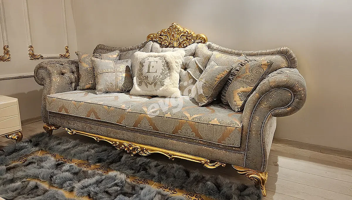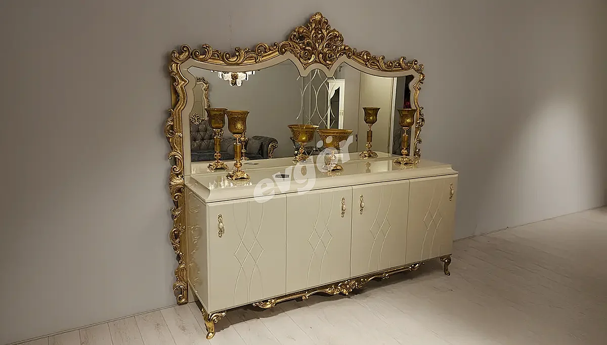 Ürünümüz 3 (Üçlü Koltuk) + 3 (Üçlü Koltuk) + 1 (Berjer) + 1 (Berjer), 1 adet Orta Sehpa , 2 adet Yan Sehpa , Tv Ünitesi ,Konsol, Konsol Aynası, Yemek Masası, 2 adet Kollu Sandalye, 4 adet Kolsuz Sandalye , Vitrin , Karyola, Gardırop , Bench , 2 Komodin , Şifonyer , Ayna, Puf, Çamaşırlık , Boy Aynası kombinasyonundan oluşmaktadır.