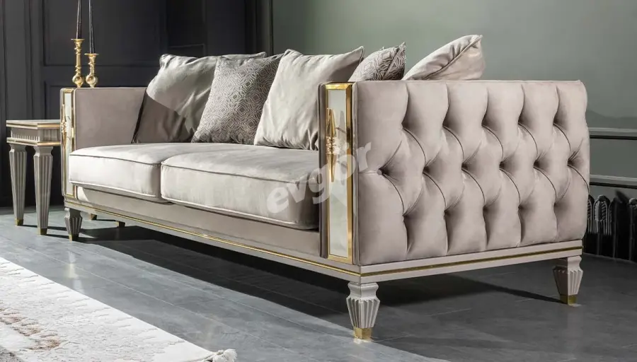 Karan Modern Krem Üçlü Koltuk