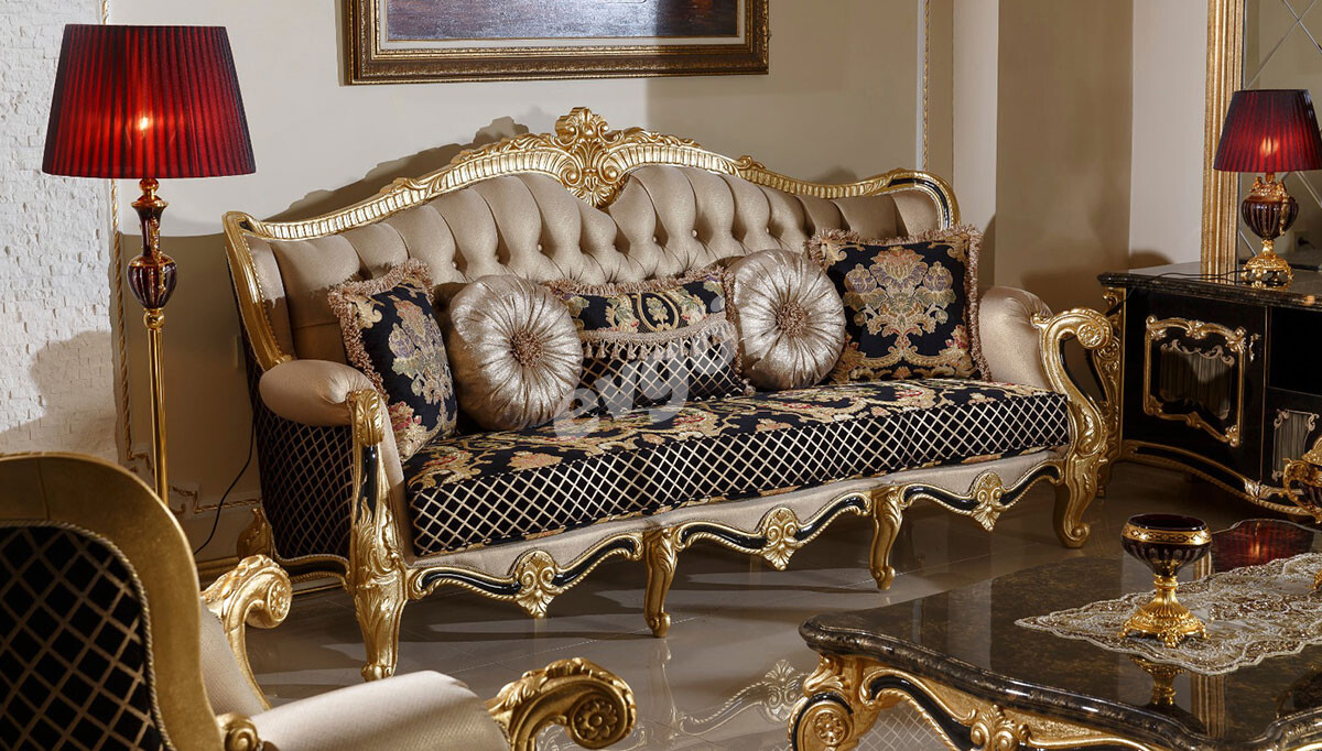 Altın sarısı dekor işlemelerle göz alıcı bir görünüş.