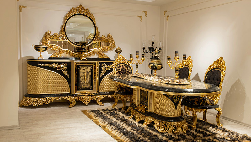 Klasik mobilyalarda işlemeler ve altın renk vazgeçilmezler arasında yer almaktadır. Klasik mobilyalara göz alıcı ve büyüleyici bir görünüm kazandıran altın işlemlerin koyu renk döşemelerle uyumu oldukça iyidir.