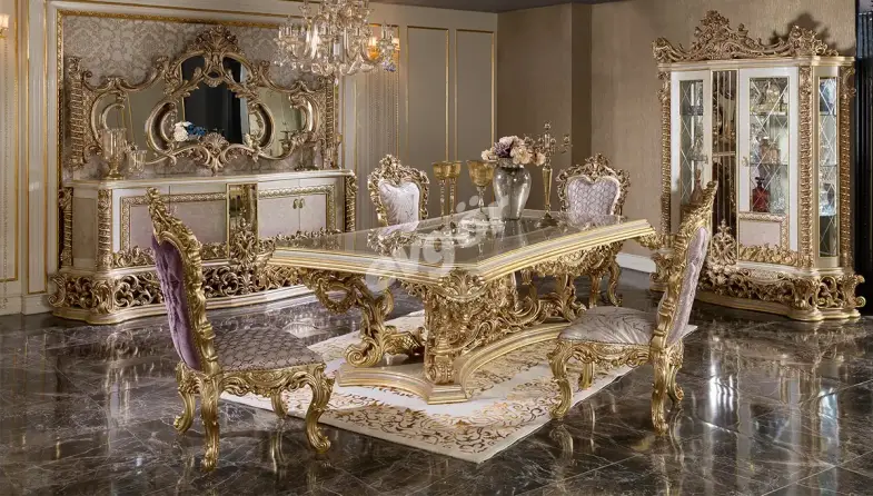 Kraliyet Klasik Yemek Odası, şıklığı ve göz alıcı tasarımı ile salonunuzun vazgeçilmezi olacak.