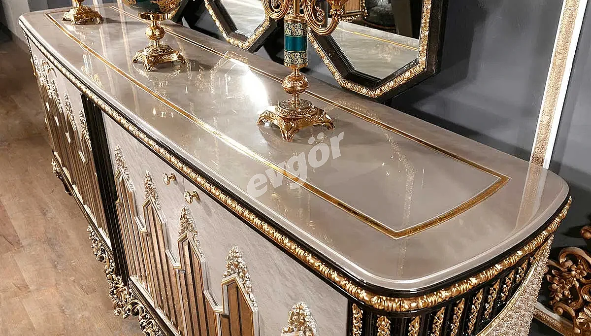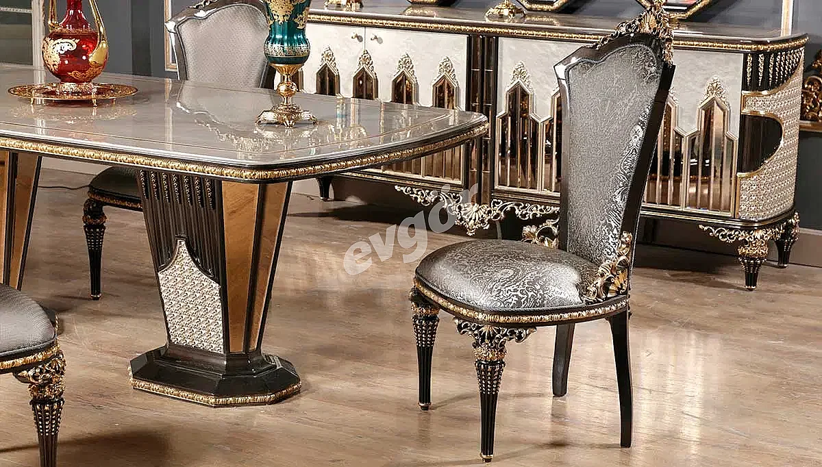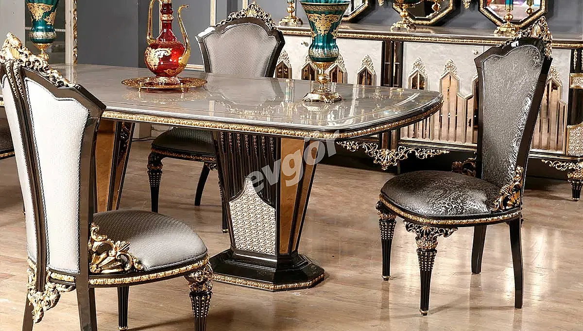 Ürünümüz Yemek Odası ( Yemek Masası + 6 Sandalye+ Konsol+ Ayna + Vitrin + Tv Ünitesi ) ve Koltuk Takımı (2 Üçlü Koltuk + 2 Tekli Koltuk + Orta Sehpa + 2 Yan Sehpa ) kombinasyonundan oluşmaktadır.