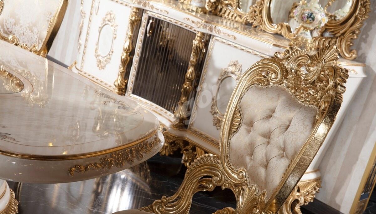 Lapseki Krem Klasik Yemek Odası asaletli tasarımı ile göz kamaştırıyor.