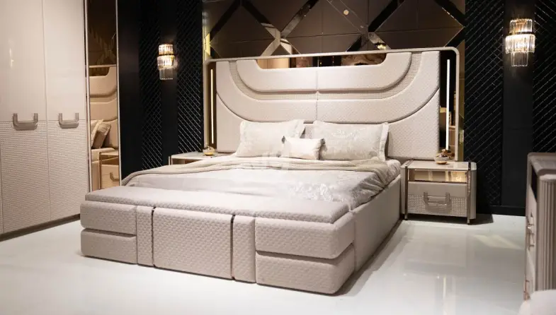 Lazare Lüks Yatak Odası modern tasarımların lüks estetiğiyle birleşerek benzersiz bir stili de sizlere sunuyor.
