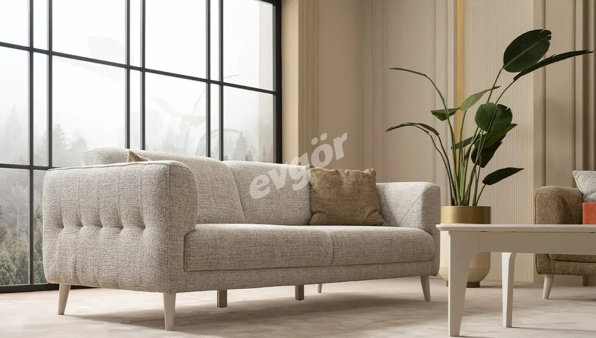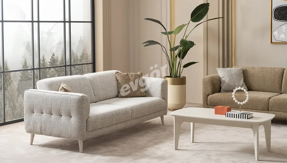 Karan Modern Krem Üçlü Koltuk
