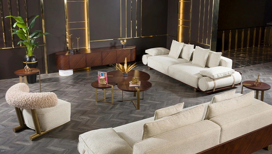Lüks mobilyalarda ceviz ağacının kullanılması, dekorasyonun genel atmosferini doğrudan etkiler. Ceviz rengi, bej, krem, altın, lacivert ve zümrüt yeşili gibi tonlarla mükemmel uyum sağlar. Bu sayede hem klasik hem de modern lüks tarzlarda rahatlıkla kullanılabilir.