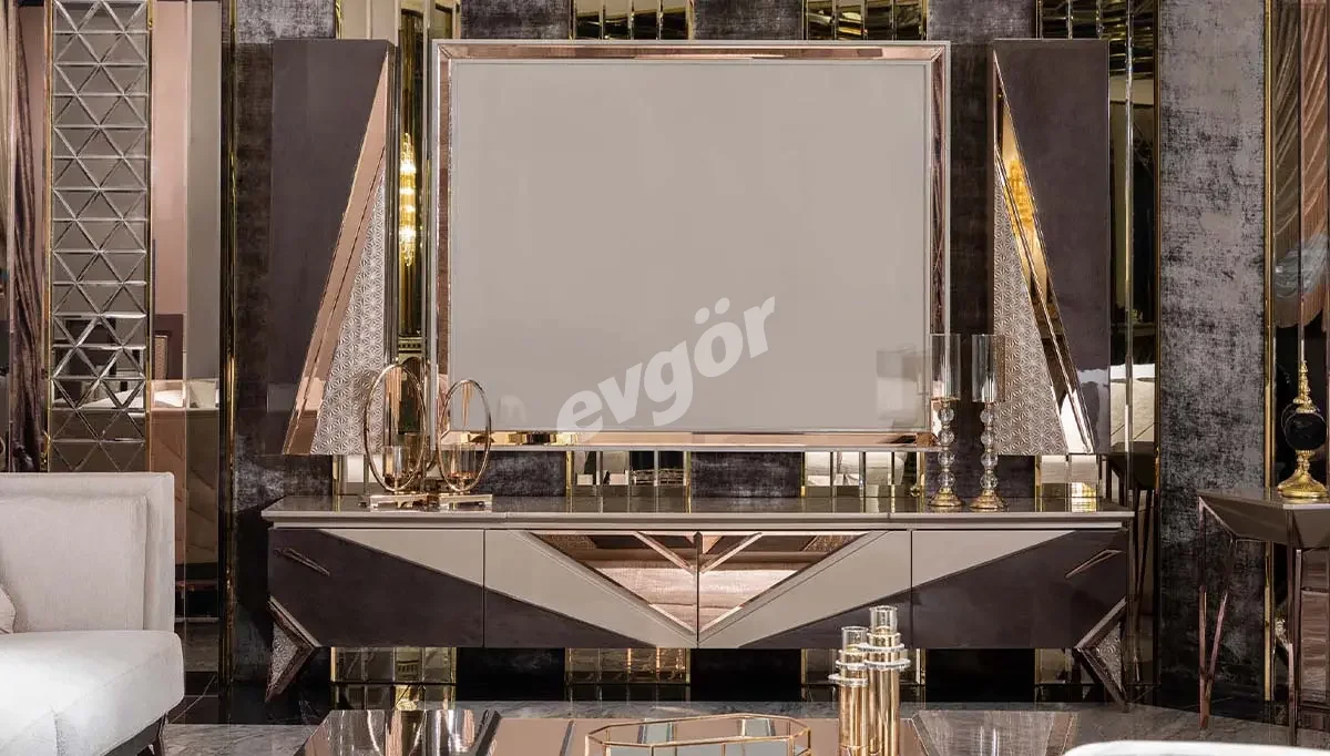 Ürünümüzde TV Ünitesi, Dresuar ve Aynası ve 2 adet Vitrin fiyata dahil değildir. Opsiyonel olarak satışa sunulmuştur.