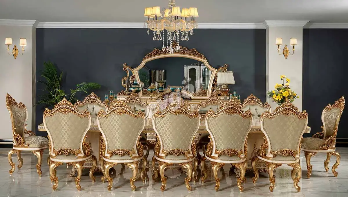 Marbella Klasik Yemek Odası asaletli tasarımı ile göz kamaştırıyor.