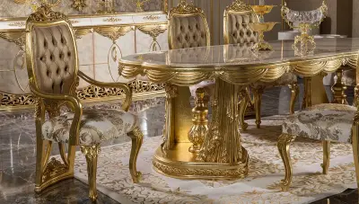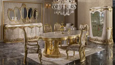 Mihrimah Klasik Yemek Odası, şıklığı ve göz alıcı tasarımı ile salonunuzun vazgeçilmezi olacak.