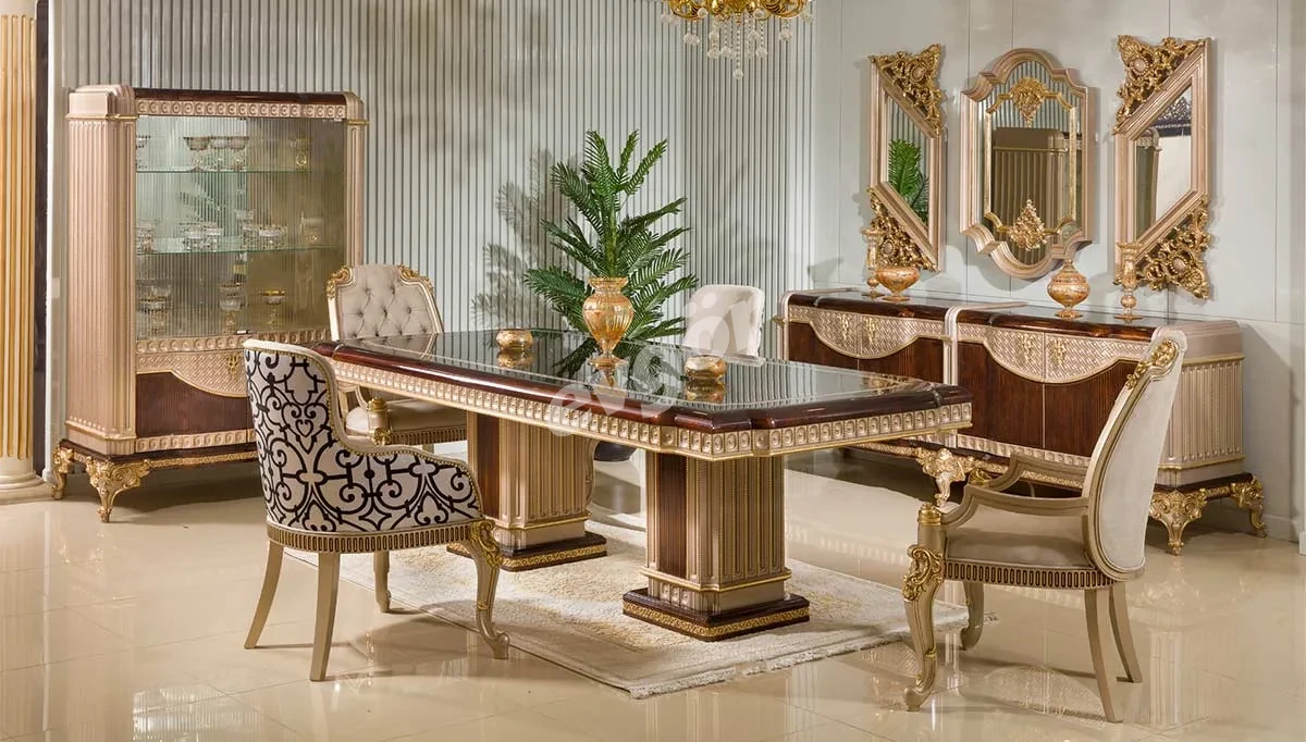 Estetik ve zarafetin en yüksek seviyede buluştuğu Lüks Yemek Odası Takımı ile, yaşam alanınıza göz alıcı bir dokunuş katıyoruz.