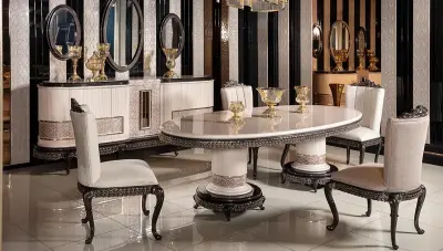 Estetik ve zarafetin en yüksek seviyede buluştuğu Lüks Yemek Odası Takımı ile, yaşam alanınıza göz alıcı bir dokunuş katıyoruz.