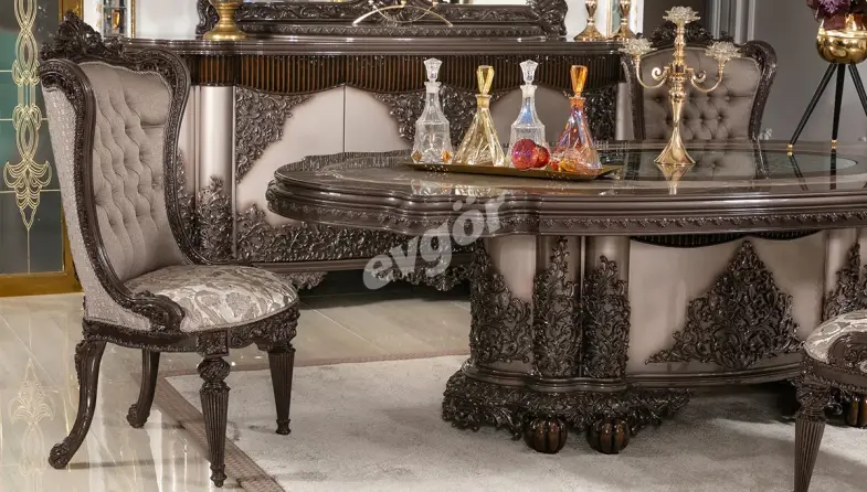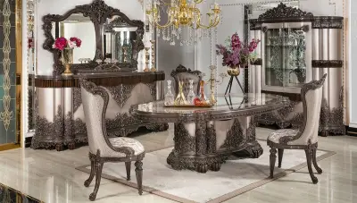 Nairobi Klasik Yemek Odası, şıklığı ve göz alıcı tasarımı ile salonunuzun vazgeçilmezi olacak.