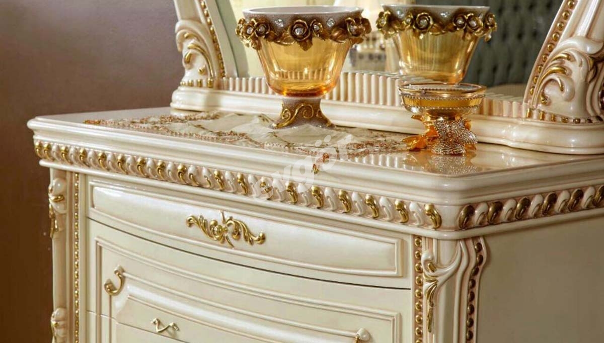 Nevora Klasik Yatak Odası varaklı tasarımı ile yatak odanıza farklı bir hava katacak..