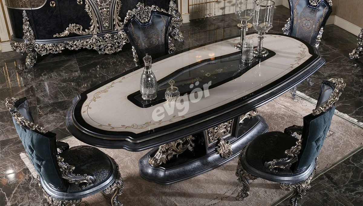 Osmanlı Mavi Klasik Yemek Masası, şıklığı ve göz alıcı tasarımı ile salonunuzun vazgeçilmezi olacak.