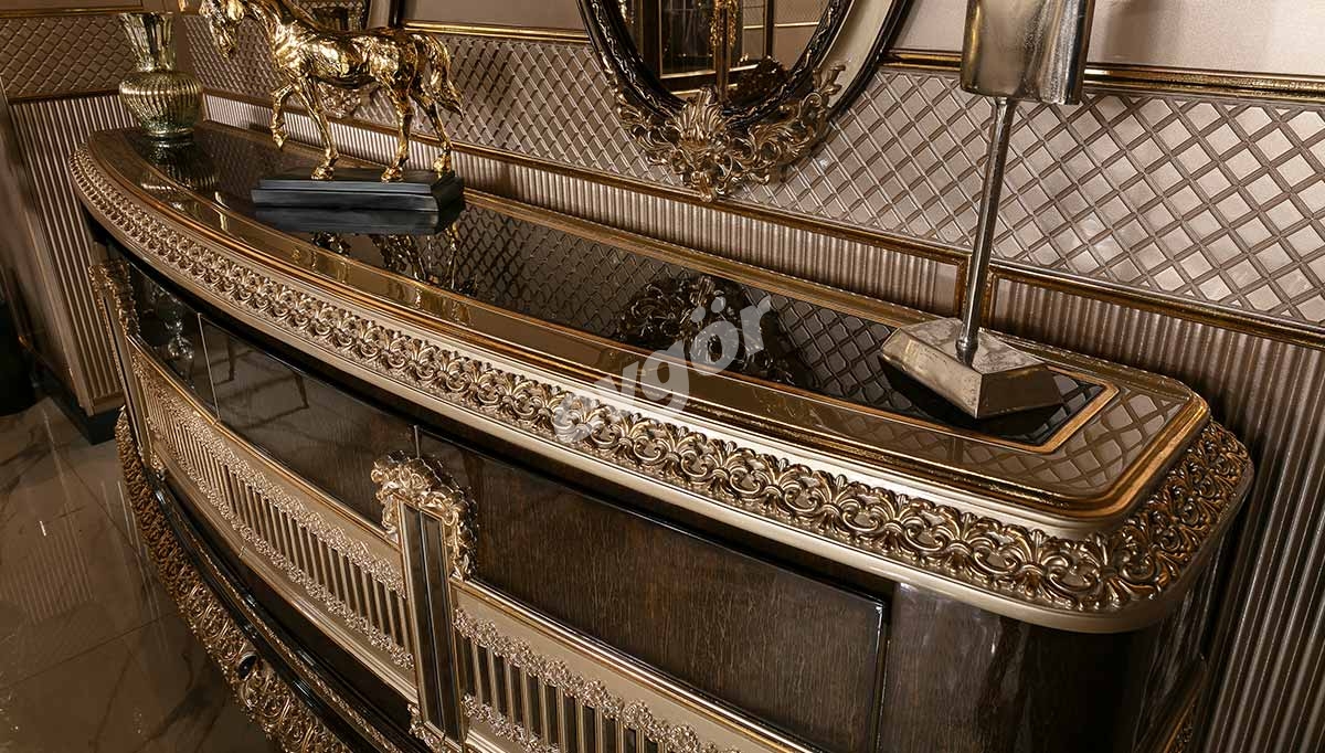 Padişah Klasik Yemek Odası asaletli ve göz alıcı tasarımı ile Evgör Mobilya'da sizleri bekliyor.