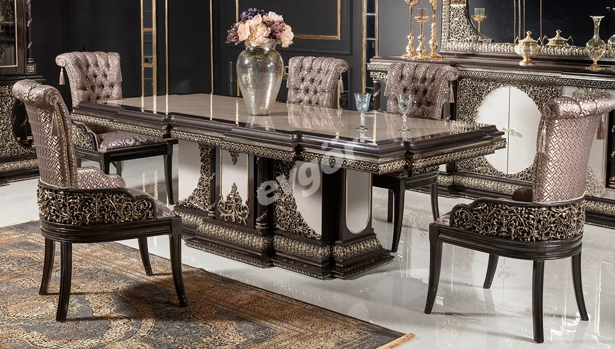 Piraye Klasik Yemek Masası, şıklığı ve göz alıcı tasarımı ile salonunuzun vazgeçilmezi olacak.