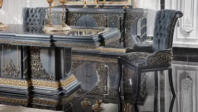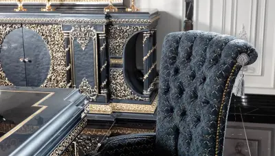 Piraye Mavi Klasik Sandalye, şıklığı ve göz alıcı tasarımı ile salonunuzun vazgeçilmezi olacak.