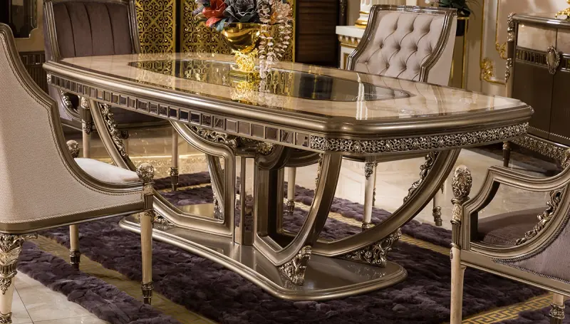 Riga Lüks Yemek Masası, şıklığı ve göz alıcı tasarımı ile salonunuzun vazgeçilmezi olacak.