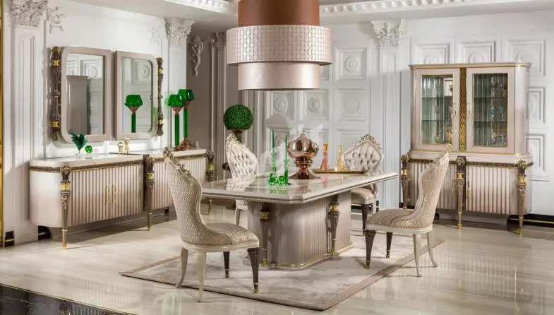 Ürünümüz Konsol, Konsol Aynası, Yemek Masası ve 6 adet Sandalye kombinasyonundan oluşmaktadır.
