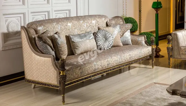 Truva Krem Lüks Üçlü Koltuk, şıklığı ve göz alıcı tasarımı ile salonunuzun vazgeçilmezi olacak.