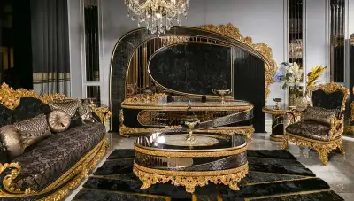 Royal Siyah Klasik Koltuk Takımı, şıklığı ve göz alıcı tasarımı ile salonunuzun vazgeçilmezi olacak.