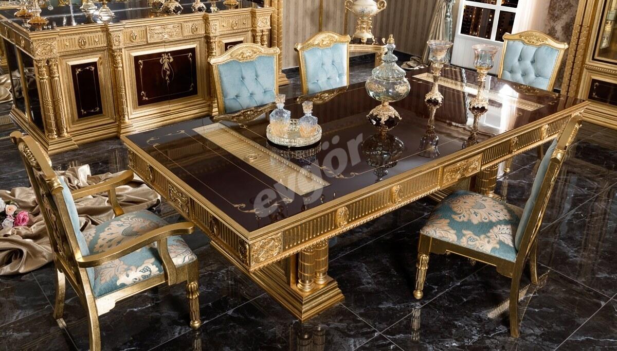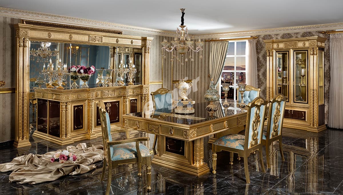 Şah Klasik Yemek Odası, şık tasarımı ile odanızın havasını değiştirecek olan bu ürün rakipsiz fiyatların değişmeyen adresi Evgör Mobilyada.