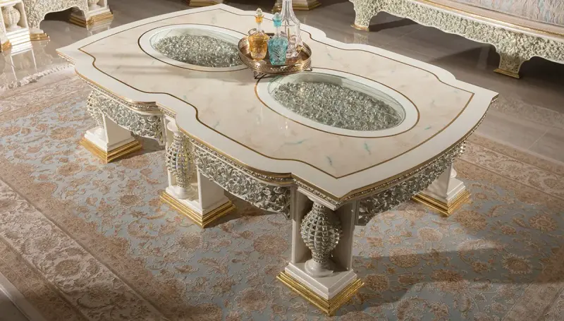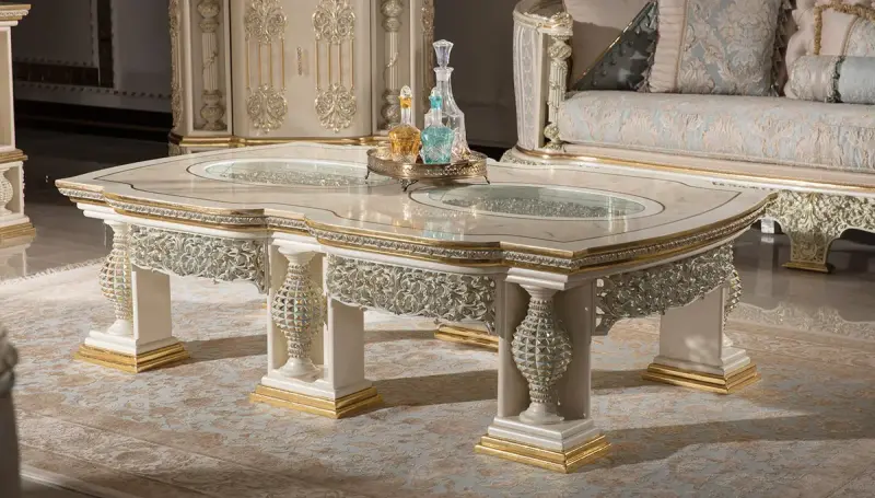 Şahmaran Beyaz Klasik Orta Sehpa, şıklığı ve göz alıcı tasarımı ile salonunuzun vazgeçilmezi olacak.