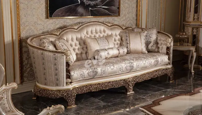 Şahmaran Krem Klasik Üçlü Koltuk, şıklığı ve göz alıcı tasarımı ile salonunuzun vazgeçilmezi olacak.