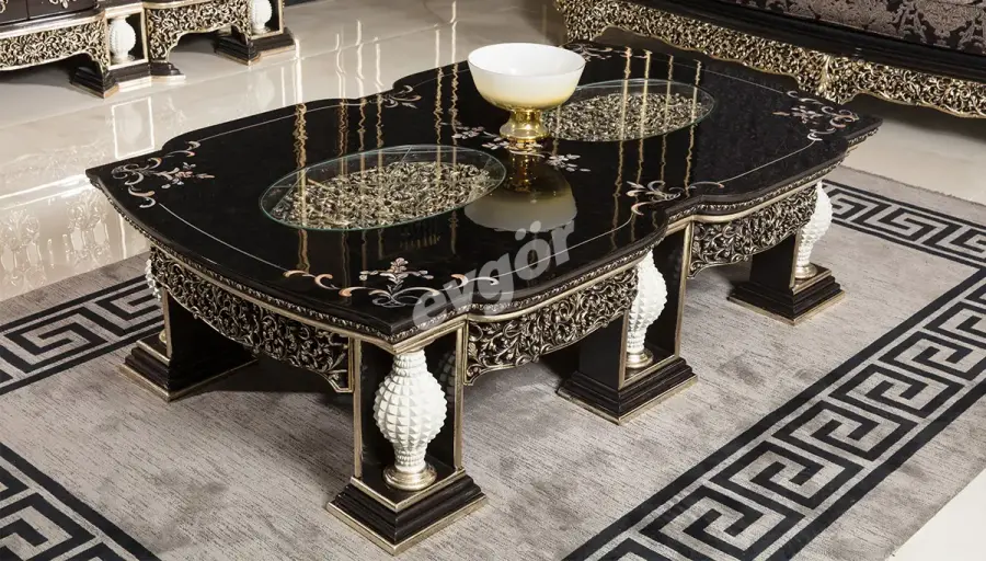 Şahmaran Siyah Klasik Orta Sehpa, şıklığı ve göz alıcı tasarımı ile salonunuzun vazgeçilmezi olacak.